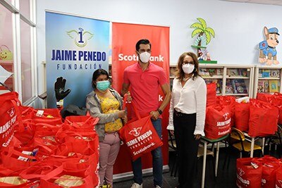 Nuevamente la alianza entre Scotiabank y la Fundación Jaime Penedo contribuye a mejorar la calidad de vida de las familias de los pacientes que día a día reciben atención médica en el Hospital del Niño. En esta oportunidad, se entregaron bolsas de comida, insumos de bioseguridad y un kit escolar entre los pacientes de las salas de quemados, hemato-oncología, medicina interna, nefrología y cardiología del hospital.