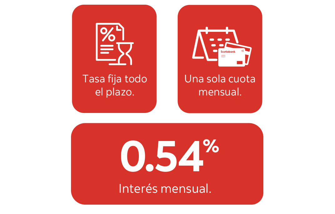 ®Marca registrada de The Bank of Nova Scotia. Aplican los términos y restricciones: La tasa regular para compras varía de acuerdo con el producto, desde 16 % hasta 26.50 %. La tasa efectiva anual puede variar desde el 14 % hasta el 28 %, según el producto. Aplican cargos administrativos de $30.00 por cada transacción de compra de saldos realizada. El monto máximo sujeto para la compra de saldo corresponderá al 80% del límite de crédito de su tarjeta Scotiabank, siempre que esta mantenga dicho porcentaje disponible. Compra de saldo a clientes existentes sujeta a verificación y aprobación crediticia. Oferta sujeta a validación previo al desembolso de acuerdo con las políticas internas de Scotiabank. Las solicitudes de tarjetas de crédito están sujetas a verificación de documentación y aprobación crediticia de acuerdo con las políticas de Scotiabank en Panamá. Sobre la promoción: válida del 01 de agosto al 31 de agosto del 2025. Este beneficio es válido únicamente para la compra de saldos de tarjetas de crédito o préstamos de otros bancos, utilizando el monto disponible de su tarjeta de crédito Scotiabank a una tasa de interés del 6.5 % anual a 66 meses, que equivale a un interés mensual del 0.54 %. No aplican tarjetas de débito ni tarjetas de crédito empresariales o corporativas. Esta promoción no aplica para el producto Visa Rey Scotiabank. El cobro de la primera cuota del financiamiento en cuotas se verá reflejado en la tercera fecha de corte de la tarjeta de crédito después de hacerse efectiva la compra de saldo. Para obtener más información sobre su fecha de corte y su fecha máxima de pago, puede revisar su Estado de Cuenta disponible en la app Banca Móvil. A manera de ejemplo, le presentamos un escenario: Si la compra de saldos se efectúa a nivel de sistema el 19 de agosto y la tarjeta corta los 18 de cada mes (es decir, su próximo corte es en setiembre), la primera cuota se cargará en el corte de noviembre. El cliente tendrá tiempo de pagarla hasta 25 días después en su fecha máxima de pago. El interés acumulado durante el período de gracia será cobrado en la primera cuota. La porción de capital que no se cubre en la primera cuota será cobrada en la última cuota del financiamiento. Podrá realizar abonos extraordinarios sin ningún tipo de penalidad o bien cancelar el financiamiento de forma anticipada en el momento en que así lo desee; para ello, deberá realizarlo directamente en nuestras sucursales de Scotiabank. En caso de utilizar nuestros medios de pago alternos como ACH, Multipagos o Multicajeros, deberá comunicarse con nuestro Centro de Atención Telefónica al 800-2000 o (507) 2975-400 para solicitar que se aplique el pago de forma adecuada a la operación correspondiente.
