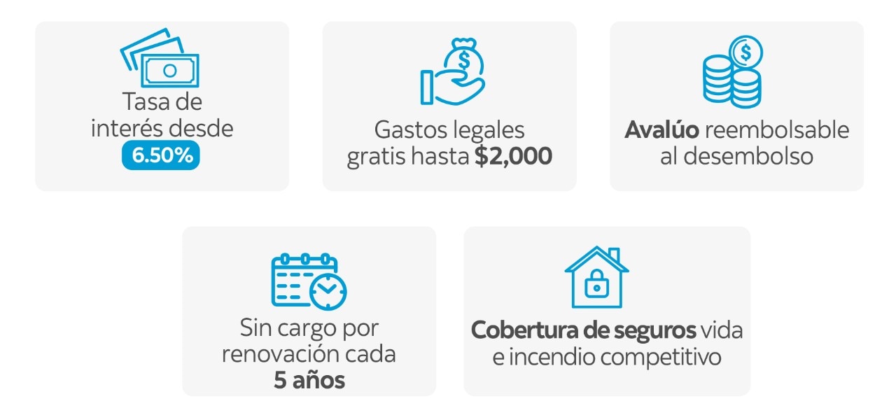 ®Marca registrada de The Bank of Nova Scotia. Promoción válida del 1 de julio al 31 de octubre del 2025. Cotización válida por 30 días calendario. Para compra de vivienda principal no preferencial nueva, en proyectos desarrollados por promotoras inmobiliarias seleccionadas por The Bank of Nova Scotia aplican las siguientes opciones: 1tasa de interés nominal de 6.50% (tasa efectiva 6.70%) siempre y cuando si el cliente elige contratar alguno de los seguros, de vida o de incendio colectivos que ofrece The Bank of Nova Scotia, 2tasa de interés nominal de 7.00% (tasa efectiva 7.23%) en el caso si el cliente elige endosar ambos seguros, de vida y de incendio. En caso de proyectos desarrollados por promotoras no seleccionadas por The Bank of Nova Scotia aplican las siguientes opciones: 3tasa de interés nominal de 6.75% (tasa efectiva 6.96%) siempre y cuando si el cliente elige contratar alguno de los seguros, de vida o de incendio colectivos que ofrece The Bank of Nova Scotia, 2tasa de interés nominal de 7.25% (tasa efectiva 7.50%) en el caso si el cliente elige endosar ambos seguros, de vida y de incendio. Gastos legales: los clientes que apliquen durante la vigencia de la promoción estarán exentos del pago que se origine de los gastos legales hasta un máximo de $1,000.00 para trámites de compra de vivienda principal nueva bajo ley de interés preferencial y hasta un máximo de $2,000.00 para trámites de compra de vivienda nueva o usada no preferencial, siempre que la confección e inscripción de la Escritura Pública la realice el Banco, no aplica si la confección e inscripción la realiza la promotora inmobiliaria. Costo de avalúo 100% reembolsable al momento del desembolso del préstamo, solo si el avalúo es realizado directamente por The Bank of Nova Scotia para que aplique esta promoción, de lo contrario correrá por cuenta de fondos propios del cliente. Todos los trámites de Préstamos Hipotecarios durante el periodo de esta promoción están exentos del cargo por renovación cada 5 años. Se exonera el cargo por pago extraordinario a capital durante el periodo de esta promoción solo para clientes con ingresos desde $3,500.00. Estas promociones no aplican para Jubilados, Pensionados y Tercera Edad, tampoco aplica para préstamos de colaboradores de The Bank of Nova Scotia y sus afiliadas. Financiamiento sujeto a verificación, presentación de documentación y aprobación según las políticas de crédito del Banco. Seguros Colectivos: Producto preferencial para clientes de Scotiabank. Respaldado por ASSA Compañía de Seguros S.A. Para más información, y especialmente para consultar los términos de cobertura, requisitos de Producto, proceso en caso de reclamo y los casos de exclusiones (situaciones en las que no aplica el producto) podrás acceder la Información Previa y a las Condiciones Generales en la siguiente dirección: https://pa.scotiabank.com, apartadoSeguros y Asistencias, Productos Crédito. Regulado y Supervisado por la Superintendencia de Seguros y Reaseguros de Panamá.